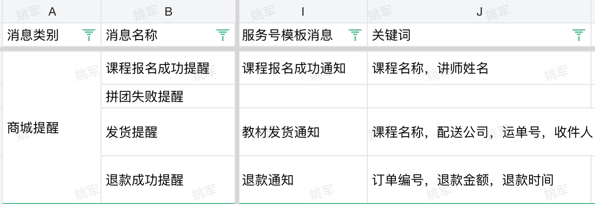 2.2.微信服务号消息,依托于微信服务号的模板消息通知学生,用户可以在微信中查收消息提醒,一次性配置,低成本触达,推送场景较少。