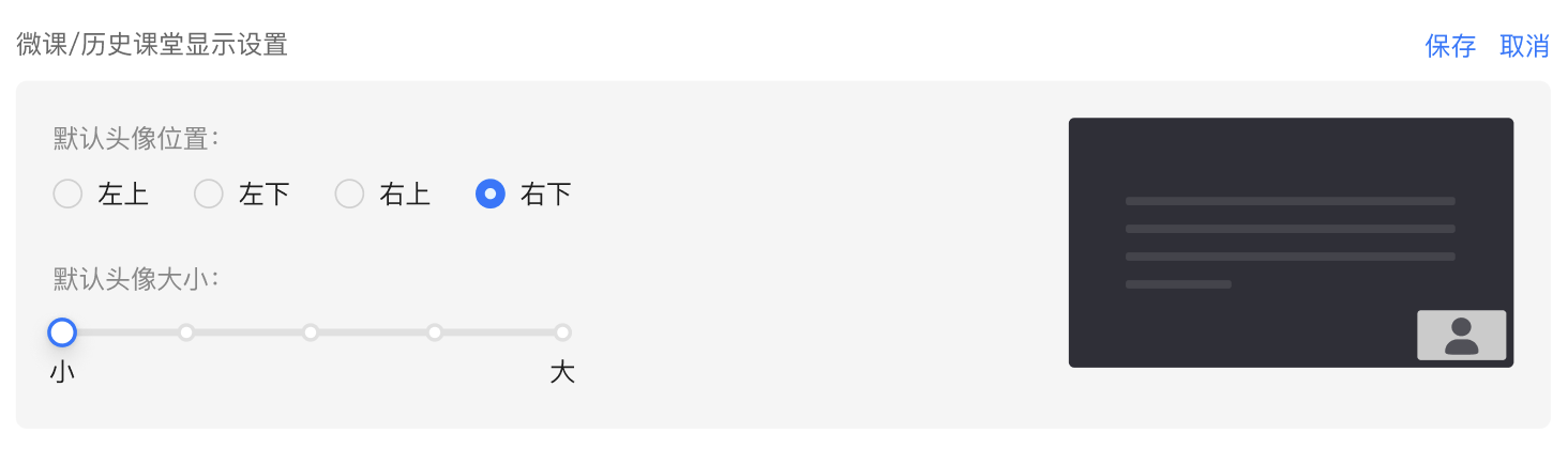 2.1.后台>高级设置:课堂设置中新增“微课/历史课堂显示设置”,对录制老师头像的回放: