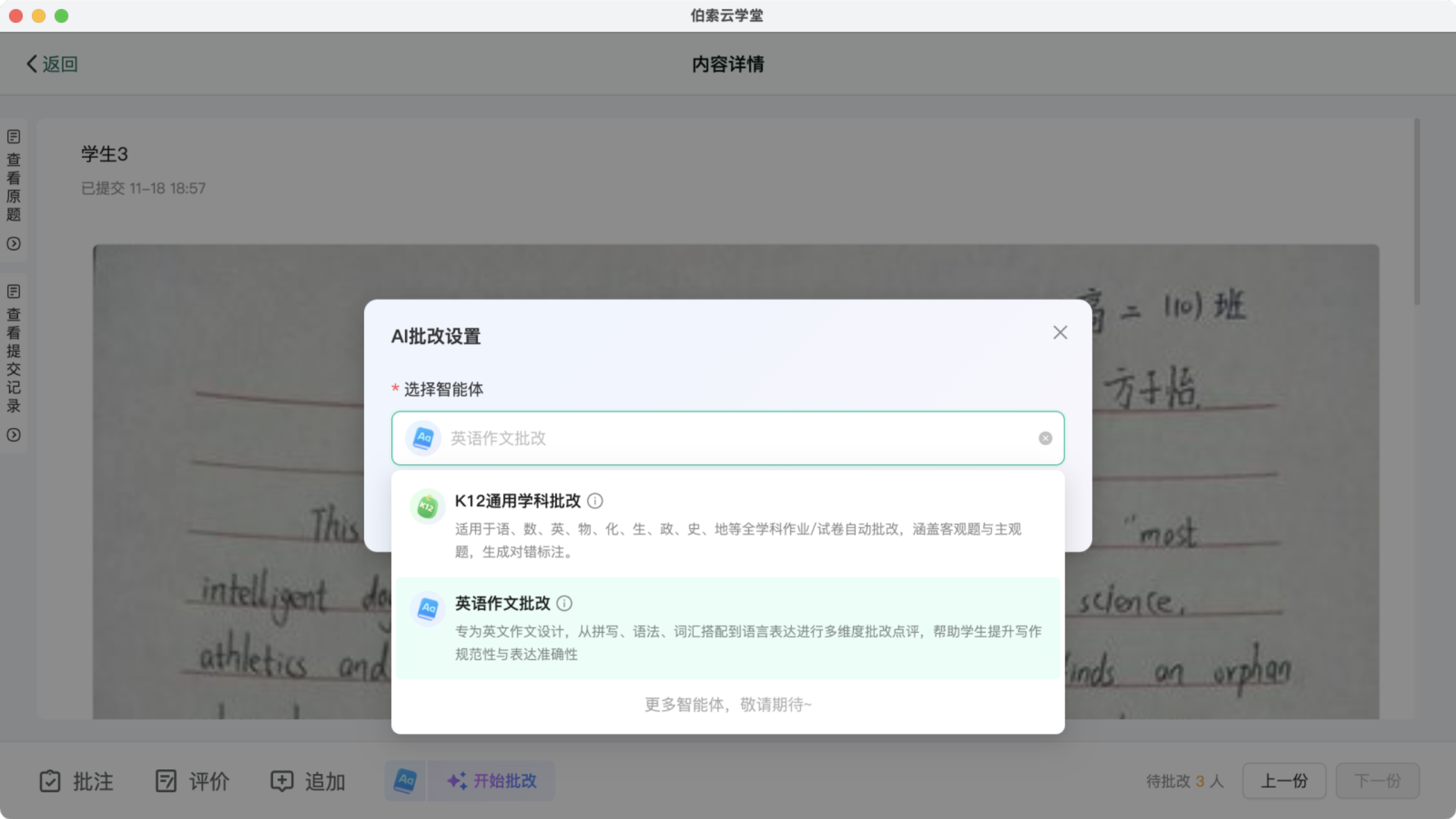 1.1. 支持对英语手写作文照片进行批改,一份作业最多支持批改5张图片