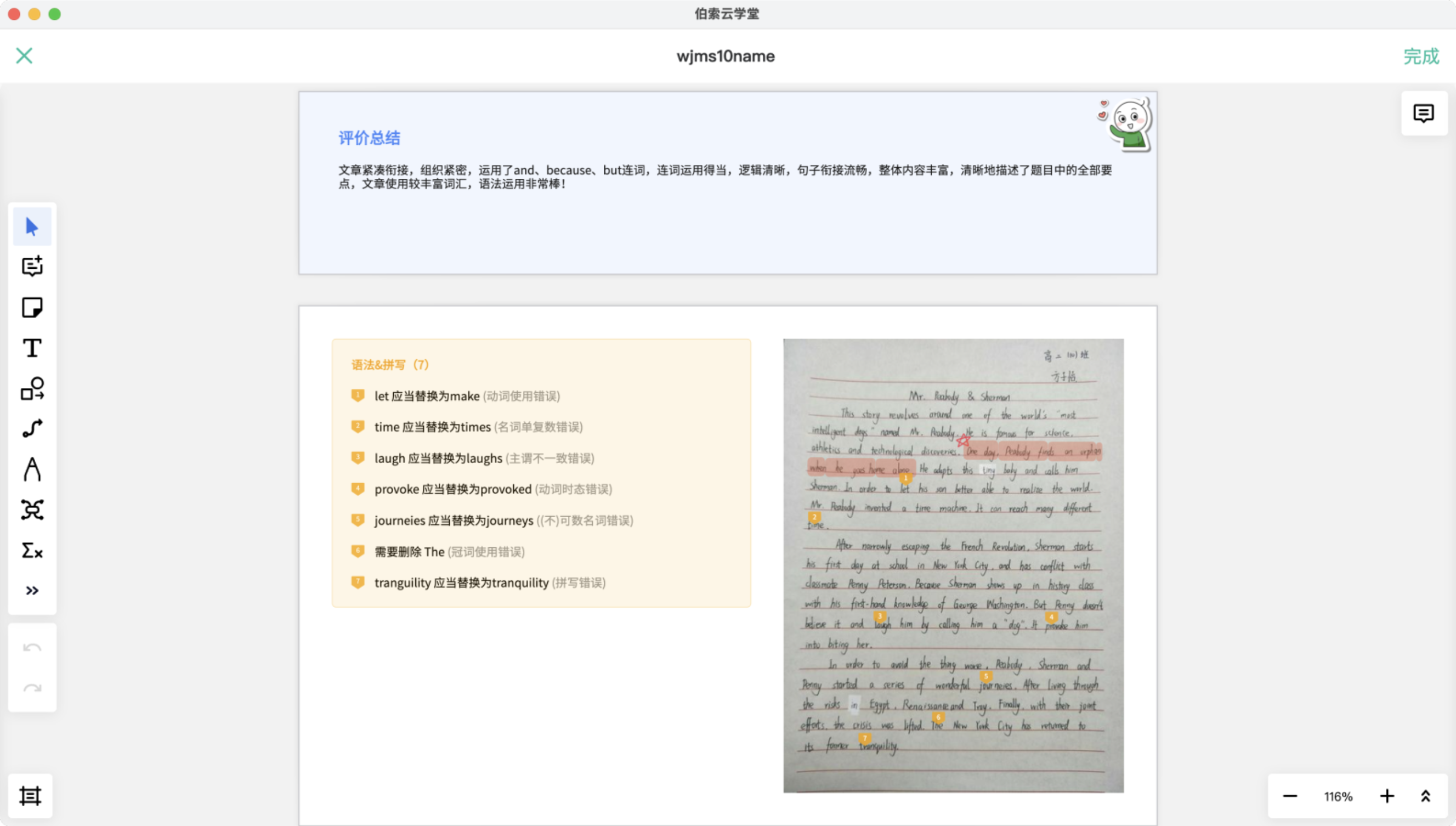 1.2. 从拼写、语法、词汇搭配到语言表达进行多维度批改点评,帮助学生提升写作规范性与表达准确性