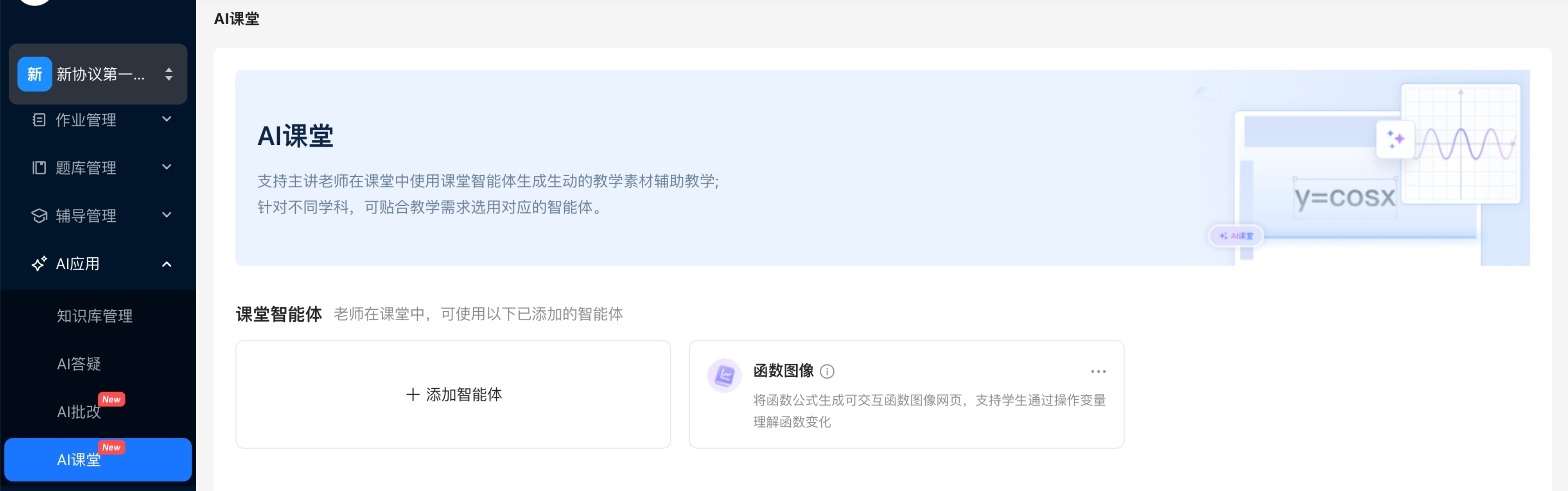 1.2. 开通后,K12 机构将自动添加该智能体。主讲老师可在课堂 / 直播中,通过【函数图像智能体】为函数公式生成可交互图像。