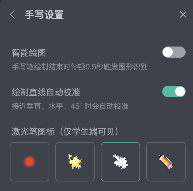 2.3.老师端>课堂设置>手写设置:新增支持自定义激光笔图标,满足差异化的教学场景